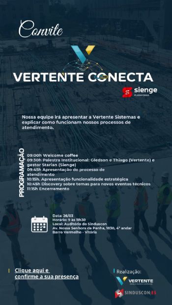Para marcar esse novo momento a empresa prepara um encontro exclusivo: o Vertente Conecta. Um espaço pensado para troca de ideias, conexão e construção de caminhos ainda mais estratégicos.